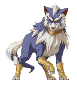 - 比地獄狼體型更大的狼類魔獸「芬裡爾」,身披銀色毛髮,能夠口吐火焰。