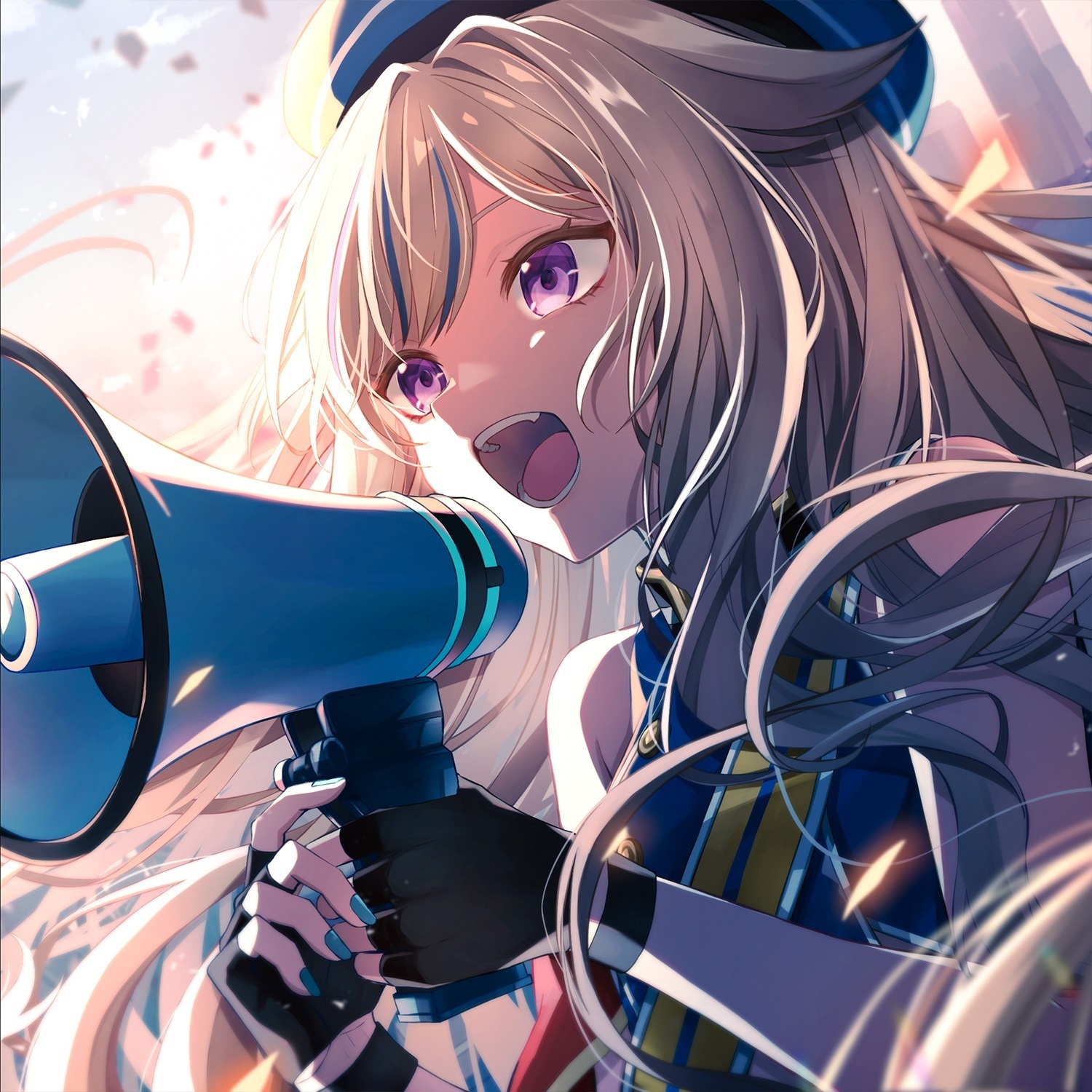 | 髮色 | 劉海挑染藍色的淡金髮 | |