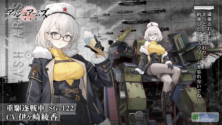 | 獲得語音 | 赤十月同盟學連、SG-122、ただいま著任しました。 それで注意事項として代理人君に伝えたいことが三つあります。 一つ、私のメガネに觸らないこと。 二つ、アイスクリームの供給を確保すること。 三つ、用がないときは私にちょっかいを出さないこと。 紅十月同盟學聯SG-122,前來報到。接下來有三件事代理人需要注意,第一,別碰我的眼鏡。第二,冰淇淋的供給要管夠。第三,平常不要煩我哦。 |