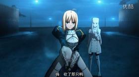 《Fate/Zero》動畫第3話最後,Saber和Lancer展開對峙,愛麗絲菲爾對Saber說:「Saber,請為我帶來勝利!」(セイバー、この私に勝利を!)Saber則對此回應:「是,我必當如此。」(「はい、必ずや。」)